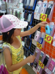 あちこちにある携帯激安ショップに連れて行くと、大喜びでピンクや水色のケータイを手にしておりました。ドコモだろーがソフトバンクだろーがそんなことはどうでもいいらしく、いかにキラキラしていて可愛いか、がポイントっぽかったです。あまりにも真剣に見ていて「みき、これ欲しい~」と言われたら困っちゃうので、陰で様子をうかがっていると、案の定こう言うんですの。