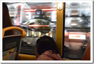 2階建てバスなので道路看板に手が届きそうなくらい近いんですの。